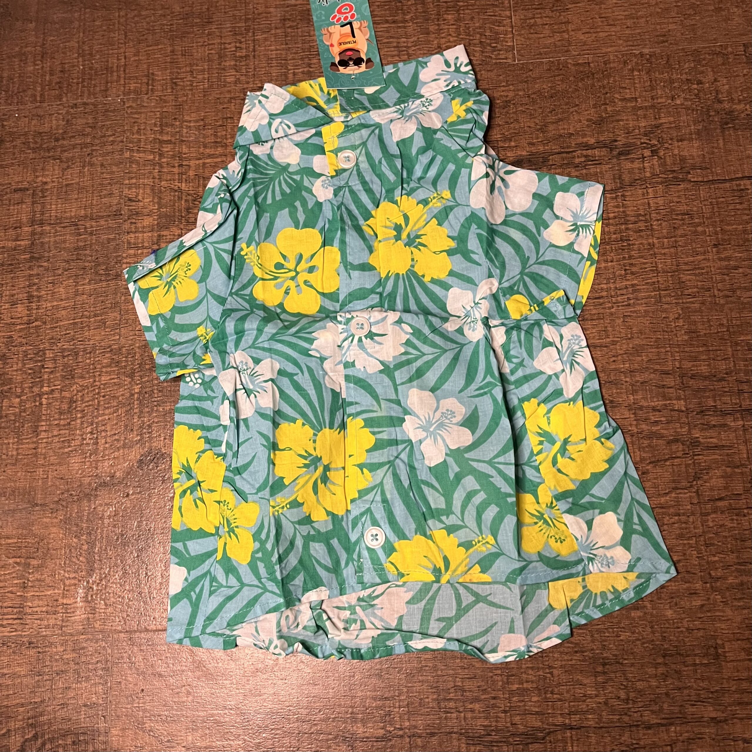 Stylish tropical cotton shirt for pets featuring a vibrant floral print. Designed with an easy velcro closure for hassle-free wear, while the front buttons add a classic look (non-functional). Lightweight, breathable, and perfect for everyday style.