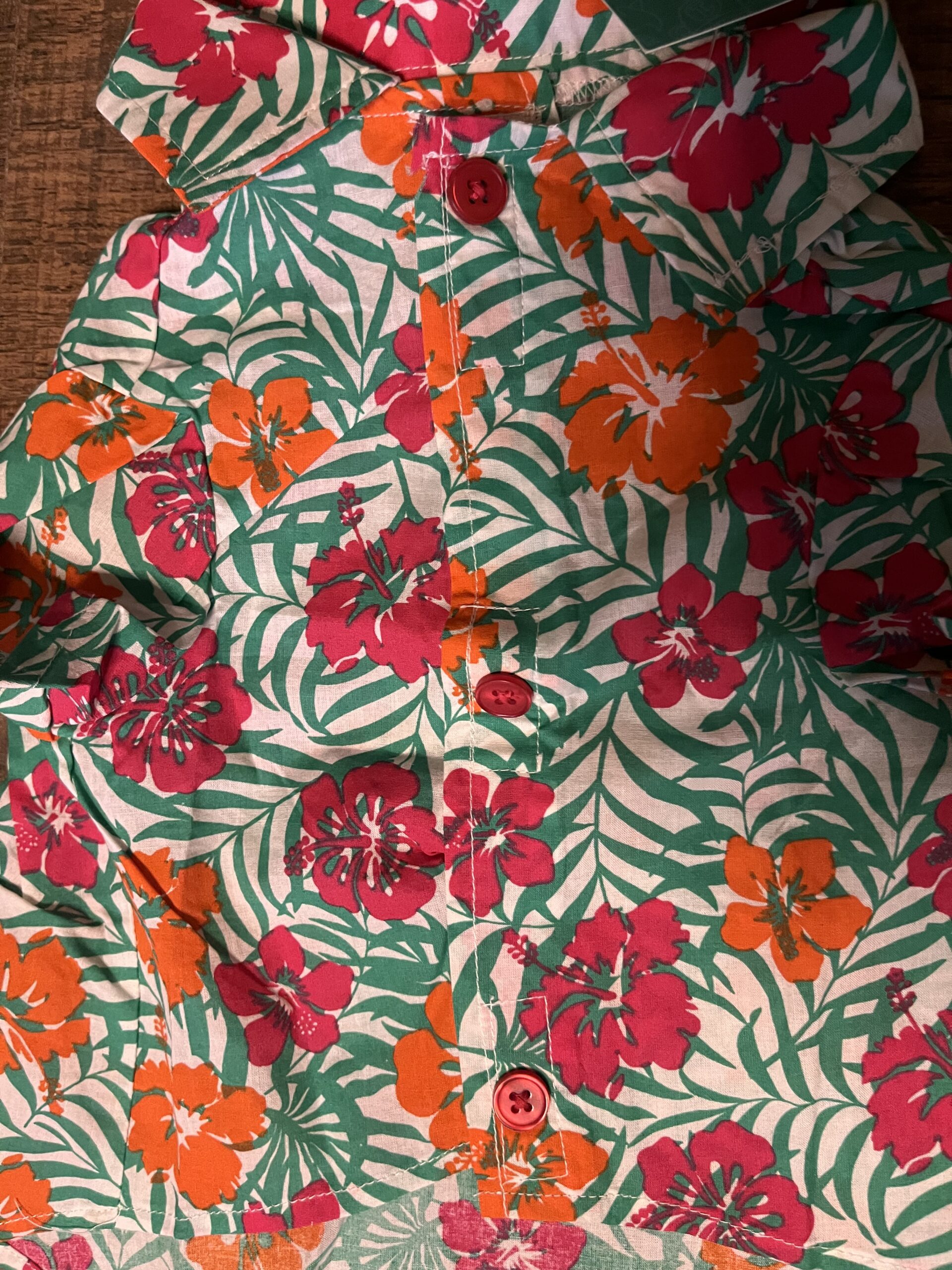 Be the first to review “Tropical Floral Cotton Pet Shirt (Pink & Orange Print)”